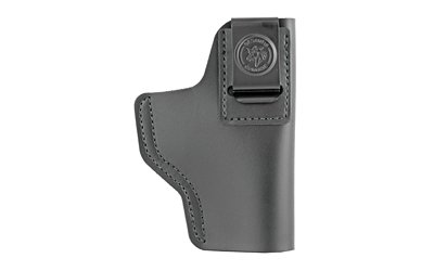 For concealment with comfort, the Insider(R) contains design features to minimize bulk. It is made with a heavy-duty spring steel clip positioned high for deep cover. The leather is soft and un-molded. Available in black.